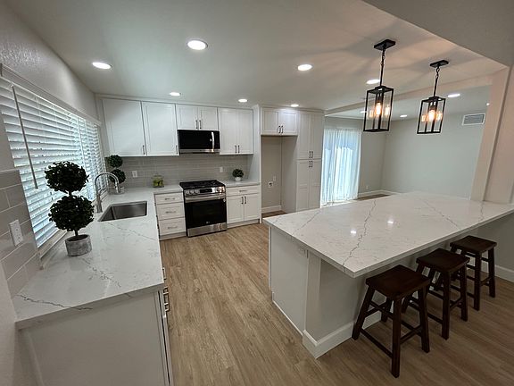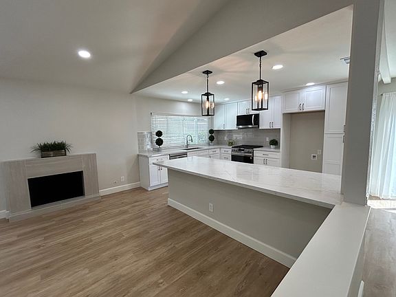 OPEN HOUSE SATURDAY JUNE 21ST, 12-3 PM This 4 bedroom 2 bathroom single level home has just been completely remodeled. New Windows and Doors are found throughout the home. It is located on a quite, beautifully kept up neighborhood that has full Lake Mission Viejo Privileges and access. Everything inside is brand new. Gourmet Kitchen has a gas range, built in Microwave Oven Dishwasher, and very large peninsula that is great for entertaining. Kitchen has an open concept design. White shaker cabinetry with soft close drawers and cupboards. Countertops in kitchen and bathrooms are white Quartz. Master Bedroom has a very large walk-in closet with Built in shelving. Master bathroom has double sink vanity with walk in shower. Secondary bath has dual sinks and a new soaking tub with custom tile surrounding. Wide Plank Luxury Vinyl wood floors and tall upgraded baseboards are laid throughout the home. There are over 50 LED recessed lights with dimmers throughout the home. There is a fireplace located in the family room There is a two car attached garage with LED Lighting. Washer and Dryer Hookups are located here. Electric Vehicle 50 AMP charger is located in the garage. 5 Minute walk to miles of beautiful hiking Oso trails beside a natural creek. One year lease All Utilites paid by the tenant One Small dog allowed 50 AMP EV charger in garage
