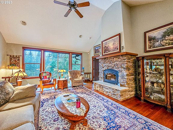 This exquisite Craftsman-style home is truly special, the owners built their dream home nestled on 3.24 acres in Colton on the edge of Beavercreek, the flow of this property is impossible to ignore, built in 2003 with meticulous attention to detail. This 2212 sq. ft. home boasts 3 bedrooms, 2.5 baths, stunningly beautiful & durable Moabi African wood floors, majestic tall ceilings and craftsman style light fixtures throughout. The kitchen features granite countertops, walk-in pantry, island and SS appliances. Security system & surround sound wiring in laundry room & office. The 224' deep well yields 75 GPM. The Septic tank was pumped in 2022. The owner has taken great care of this home and can provide records. The 30 x 60 shop w/large loft and 2 RV height bays creates extra privacy from the road. Conveniently located 12 miles from the Berry Hill shopping center in Oregon City as well as Molalla and Estacada and 3.5 miles to Colton. A beautiful pond greets you at the entrance and stepping inside you find a super cozy great room with a wood burning rock fireplace with Heatilator. The laundry room is spacious, as is the pantry. The home features a built-in vacuum system and an oversized water heater. Both the electric furnace and heat pump were installed in 2015. A Sunsetter awning and a motorized shade provide a comfortable experience on the west side of the home that also boasts a 50-year, standing seam metal roof. The owner meticulously maintains all aspects of this incredibly special home. Stepping out onto the delightful rear patio, you will find nestled at the edge of the woods, a charming bunkhouse with a quaint porch and metal roof to match the main home. Firewood stacked under a metal structure awaits your bonfire. Whether you're entertaining guests or simply enjoying the moment, you will truly enjoy this idyllic retreat!