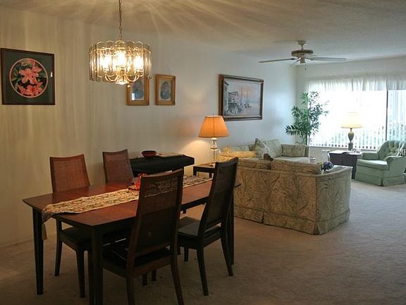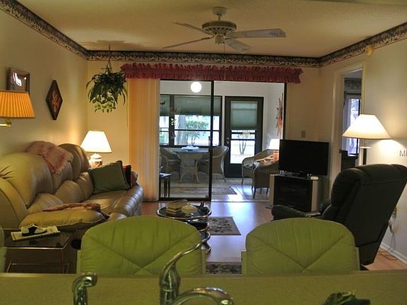 Come make this condo your winter retreat or permanent home! This turnkey furnished 2 Bedroom 2 Bath first floor unit with detached 1 car garage has it all! New carpet in the living/dining room area, wood laminate in the family room, breakfast bar and glass enclosed Florida room. Step out your back door and you are just a short distance to the pool and clubhouse. This active 55+ community has a lot to offer