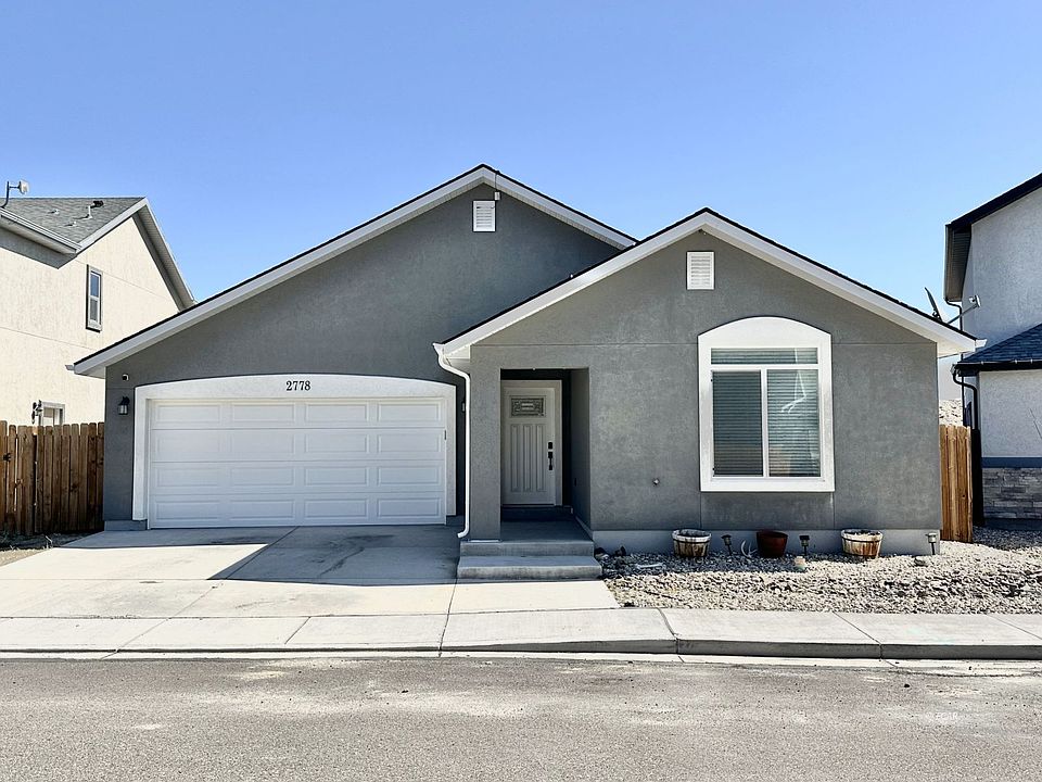 This newer construction home is ready for you. Single level living. The front of the home has 2 guest bedrooms and a full bathroom. The wide entry hallway has plenty of space for a muck bench or decor. The rear of the home has the owner suite with a tiled in walk in shower and double vanity. Vaulted ceilings in the owner suite and main living area. The great room has a corner electric fireplace and mantle. The kitchen has a penninsula with raised bar for entertaining. The laundry room is just off that where you also access the garage. Fenced on 3 sides to the house. Full stucco home built on a conditioned crawl space. Pictures of home when it was new construction.