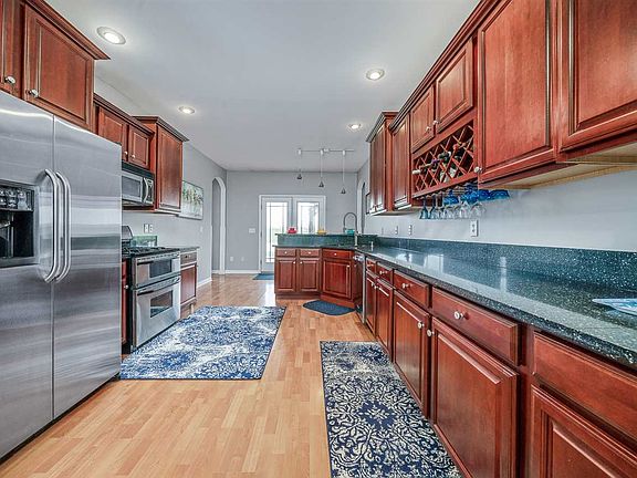 THE ONE YOU HAVE BEEN WAITING FOR! 4 bedroom, 3.5 bathroom, brick ranch situated on a private, 1.3 acre lot with panoramic country views! Open concept floor plan on the main floor with living room, formal dining room, kitchen and a main floor office all open to one another. The living room is cozy and inviting with a gas fireplace and views of your backyard oasis. Kitchen boasts tons of cabinets and granite countertop space. There is a main floor office that could also serve as a den along with main floor laundry. Master suite has a large soaking tub and spacious walk in closet. In the finished lower level you will find a rec room, full bathroom, 4th bedroom, exercise room (that could also serve as a 5th bedroom) and a second office space. The exterior of this property has many special features: storage shed, pergola, large deck, paver brick patio, hot tub & firepit area. This property also features a heated, 3 car garage. Ask about the hardwired HIGH SPEED INTERNET!