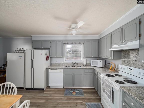Come and fall in love with this neat brick ranch located in Three Fountains Subdivision. Huge corner lot with partial brick fence on back. Updated kitchen cabinets and granite counter tops with eat in kitchen and lots of room. Formal living and dining rooms are light and airy, perfect for gatherings. The great room opens to the very well kept screened porch that goes to a paved patio area, perfect for summer gatherings. Home has been freshly painted with neutral colors throughout. Master bedroom is quite roomy with two closets and the master bath with a separate shower. Lots of room for vehicles and storage in the double car garage, lots of shelves and workbenches. Zoned for Lexington 1 schools, easy to get into I-77 and I 26, minutes from I-20 and downtown Lexington. Close to Amazon and Michellin What are you waiting for?