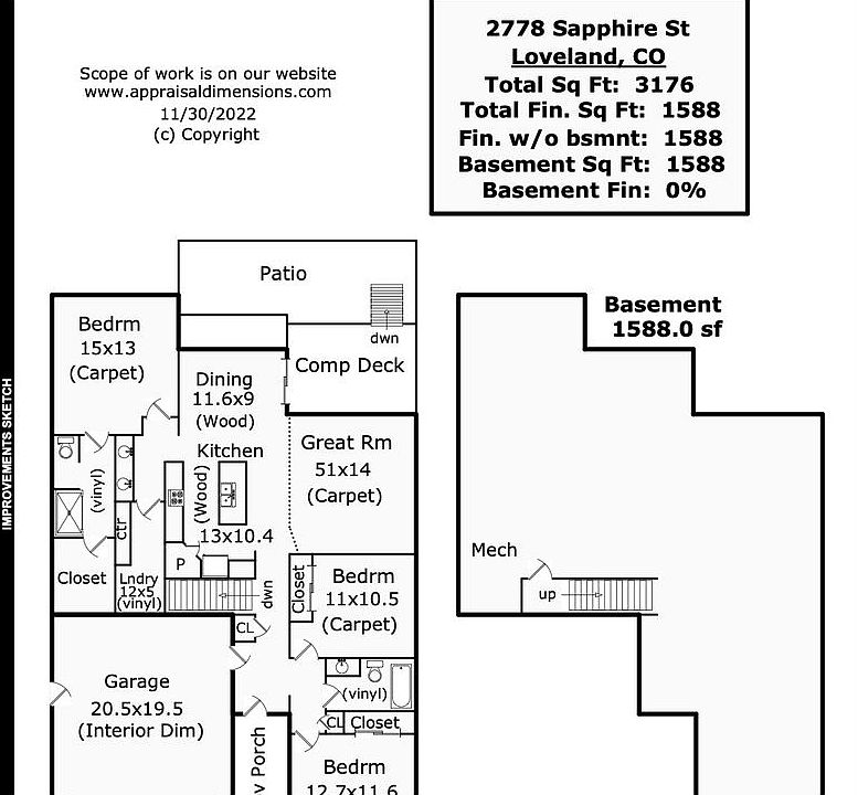 This 3176 square foot single family home has 3 bedrooms and 2.0 bathrooms. This home is located at 2778 Sapphire St, Loveland, CO 80537.