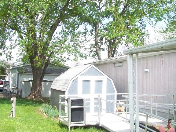 shingle roof, vaulted ceilings, open living room into eat-in kitchen with breakfast bar and lots of cabinets, newer appliances, NEW A/C and water heater, laminate flooring thru-out, wheelchair ramp, shed, deck, view of the lake. Nice clean home priced to sell.