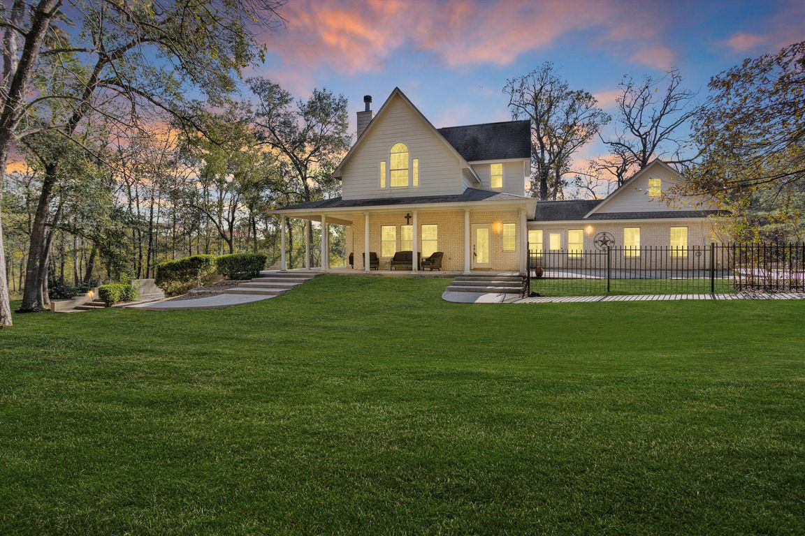 Tucked behind a private gate on nearly 15 acres, this Montgomery estate welcomes you with a long secluded drive, a wide wrap-around porch and a striking front staircase. The two-story layout offers 3 bedrooms, 2.5 baths and a flexible converted garage perfect for work, hobbies or guests. The living room features ...