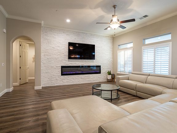 Stunning beauty with the security of a gated community! This gorgeous home has 3 bedrooms and 2 full bathrooms with an office that could be used for additional bedroom. The heart of this home is the beautiful open-concept kitchen, living and dining space. Extra-tall ceilings add to the spacious feel. Contemporary art and modern tech come together in the living room's custom quartz rock accent wall with gorgeous electric fireplace. The kitchen features granite counters, tons of cabinetry and two pantries! Neutral colors and plantation shutters make the entire space feel homey and elegant. You will love walking into your own oasis in the Master Suite, with double closets, beautiful finishing features and granite counters in the bathroom. Luxury vinyl flooring throughout the home creates continuity and cleanliness. You will feel at home the moment you walk in!