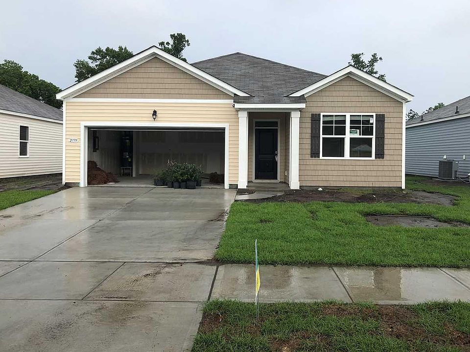 This SMART HOME IS CONNECTED! Control your thermostat, unlock/lock your door and see who is ringing your bell all from your smart phone! This beautiful 1 level Aria plan has a great open design. Kitchen features stainless appliances (including refrigerator) and 36" cream cabinets with pendant lights over the gourmet granite counter height island, all overlooking the spacious Living Room and Dining Room - great for entertaining! Low maintenance Vinyl Wood Plank floors throughout the living area, bathrooms and laundry room. From the Dining Room, sliding glass doors take you to a 12 x 8 ft. covered porch. Owner’s suite offers a large walk-in closet and bath with 5 ft. shower, double vanity and sinks. Will be completed in APRIL/MAY 2019 Washer, dryer and garage door opener included! Be the first to live in Meridian at Market Common. The Meridian will offer 200-300 new homes, featuring floor plans both ranch and two story homes. We are the price-leader for single family homes in Market Common! Our home owners will enjoy a gracious pool, amenity center w/ pickle ball court, walking trails and a short golf cart ride to the beach. Live like you're on vacation! Photos of home are of a model home of same floor plan in another community and are for presentation only.