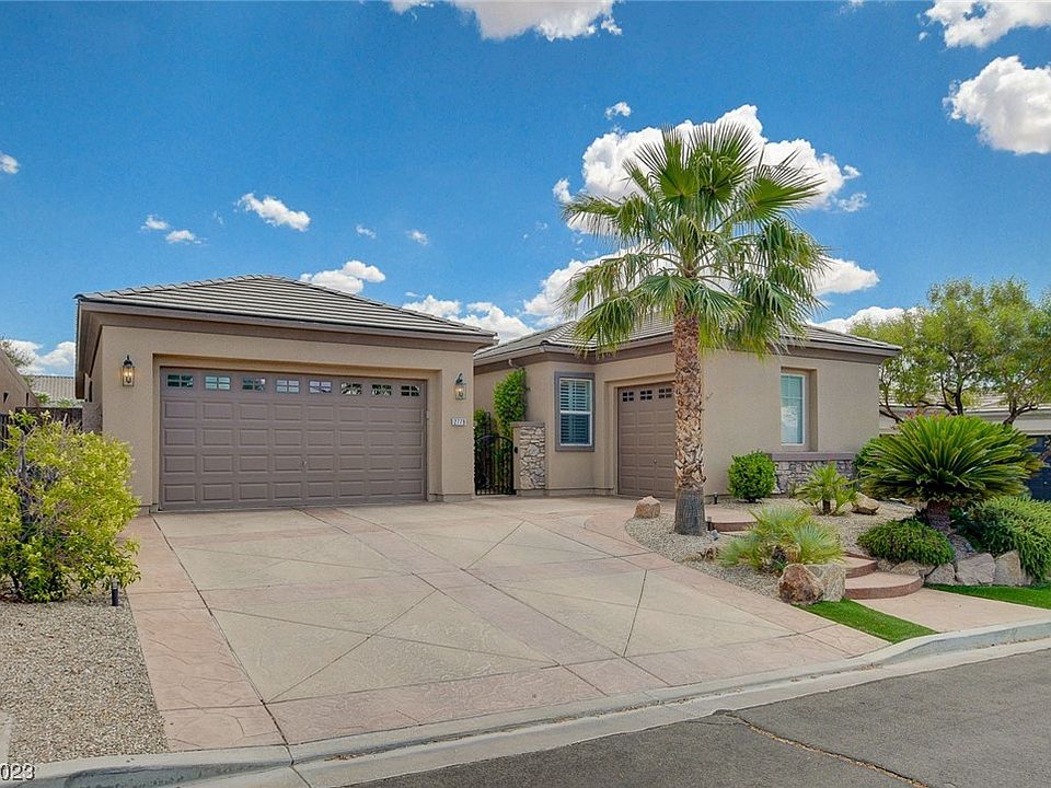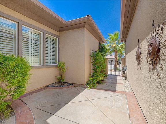 Impeccable curb appeal welcome you into this gorgeous single-story home. The open floorplan design is great for entertaining and features a living room with a fireplace, formal dining room, family room, and breakfast nook. The kitchen features tons of counter and cabinet space, granite countertops, stainless-steel appliances, built-in double-ovens, and a separate gas cooktop. The spacious primary bedroom offers an ensuite bathroom with dual sinks, a large countertop, an oversized walk-in shower, a separate tub, and a walk-in closet. Two nice-sized additional bedrooms, one with its own private full bath, an additional full bathroom, and a bonus den round off this wonderful home. The backyard backs up the arroyo and is beautifully landscaped with synthetic grass, a built-in firepit, and shrubs for an effortless yet beautiful design. Easy access to local freeways, Black Mountain and other hiking trails, Lake Mead, shopping, golf, dining and so much more.