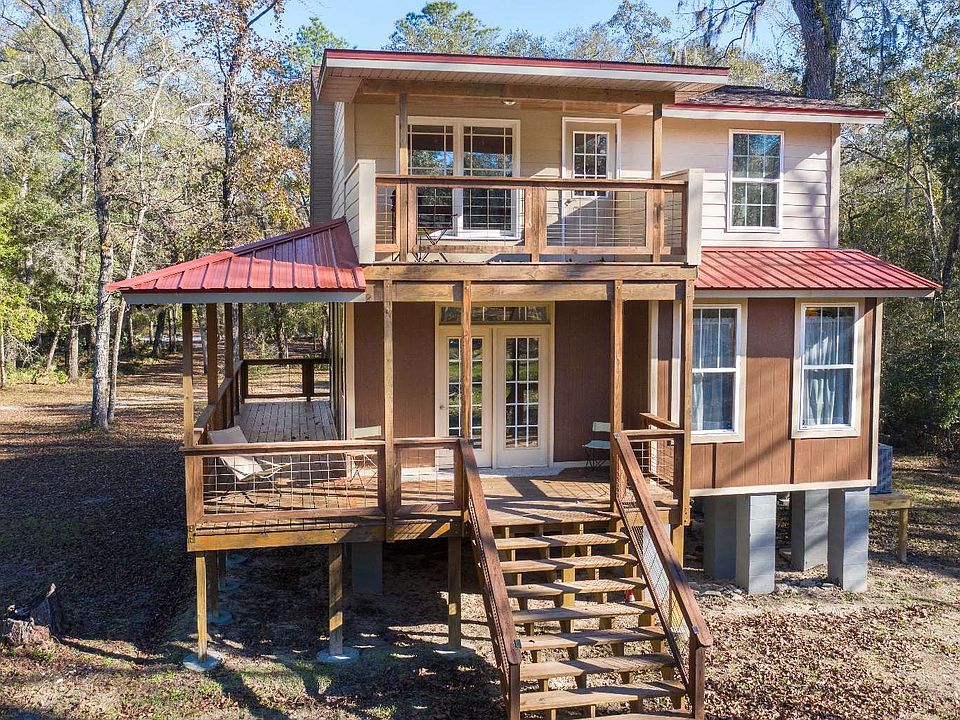 River Retreat Work Camp! Come see the new construction with old world craftsmanship at this custom, rustic 2 bedroom, 2 bath, 2 story river home. Sip coffee on your wrap around porch or relax on your balcony overlooking the deer and turkey. Close to Rock Bluff Springs/boat ramp and Gornto Springs.