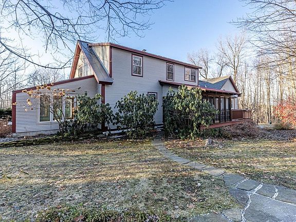 This private country property is set back off the road on over 11 acres of land. The house has tons of natural light and a south-facing year-round sunroom. The sunroom along with the screened-in porch, hot tub, and expansive front deck were some of the owner's favorite features of their home. The owners put on an addition in 2009 that has a first-floor primary suite with vaulted ceilings, a gas fireplace, generous closets, a spacious bath, and laundry. The lower level of the addition has a media room and a heated two-car garage. The kitchen, with updated appliances, opens to a beautiful sunroom and a dining room with custom built-ins and access to a screened porch. Upstairs are three additional bedrooms with ample walk-in closet space and a full bath. The backyard has a walkway over a charming bridge that leads to a sweet “Hobbit House” with electricity. A detached 3-car garage offer tons of storage or could be a great workspace, wood shop, or hobby space. This gracious country property is 10 minutes from I-89 and Taft Corners, and 15 minutes to the airport!