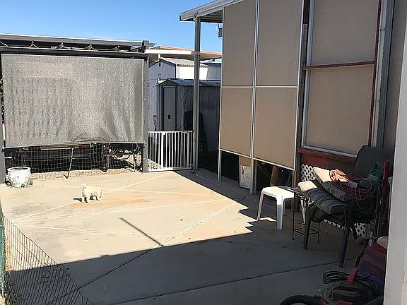 Home is a 2005 Redman fully insulated 16x60 single wide. The home is in a friendly, clean, safe and active 55+ park that you can be as busy or laidback as you want to be. You’re $450 land lease covers everything except your electricity and the home has a rooftop solar system to ease that expense a lot. The home has had extensive upgrades in the last two years including new shade cloth all around, new water heater, water softener, new flooring, lighting and new mini splits were installed for heating and cooling needs and are very affordable to run. Most of the inside has been painted with no paneling anywhere it also has newer vinyl plank and tile floors throughout. There is a RO system also. Outside there are two patio areas one covered, one not covered. An outside fridge and seating area up on the porch. There’s two parking spots one covered one not.