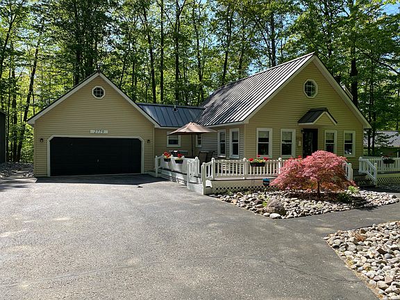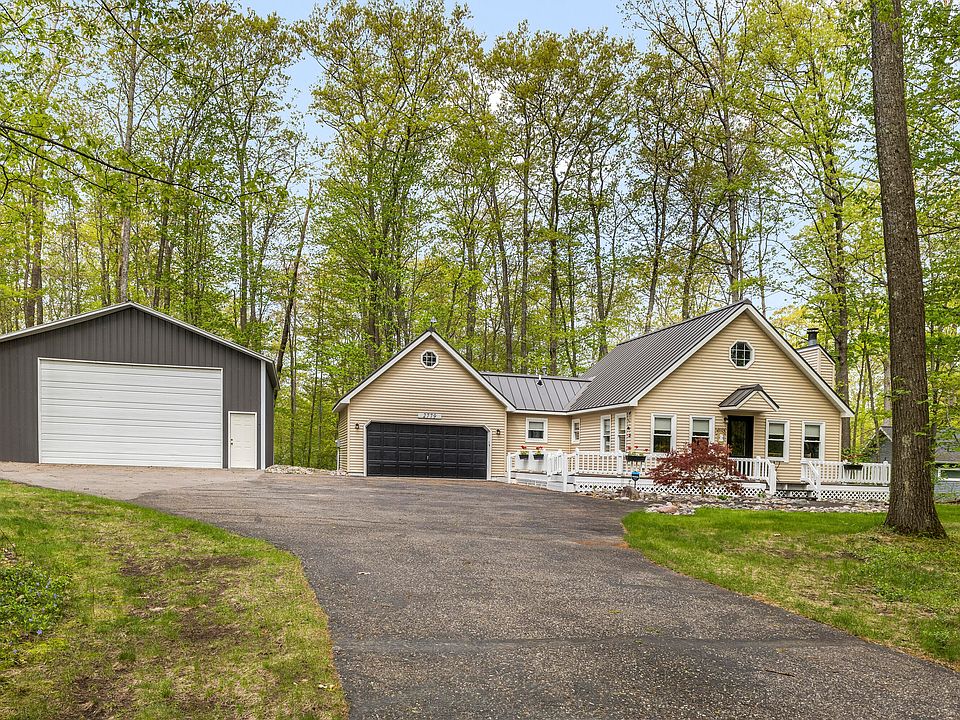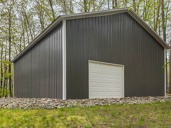 Experience the charm and comfort of this stunning chalet, where rustic elegance meets modern convenience. Nestled in a serene setting, this home offers a cozy two-bedroom, one-bath layout with a versatile loft space that serves perfectly as a second bedroom. Step inside to find gorgeous hickory wood floors flowing throughout, creating a warm and inviting ambiance. Enjoy peace of mind with new windows installed in 2024 and the efficiency of central air for year-round comfort. The durable Husky Metal Roof, added in 2020, ensures lasting protection against the elements. Outdoor lovers will appreciate the expansive deck wrapping around the front and one side—ideal for morning coffee, evening relaxation, or entertaining guests. The irrigation system keeps your landscape looking pristine with ease and the Home Warranty offered is a Yes! Storage and functionality abound with the attached two-car garage and an impressive 1,200-square-foot pole barn, built in 2021 featuring 12-foot front doors and a 7-foot rear door, this space is perfect for housing vehicles, equipment, or even transforming into a workshop. Bonus Offer: A portable sauna is available for separate sale perfect for unwinding and bringing a spa-like experience right to your doorstep. EXTRA BONUS: Comes with a Home Warranty! This chalet isn't just a home it's a retreat. Come discover the possibilities!