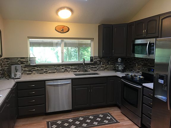 PRIVACY AND SECLUSION! Hidden from the road and nestled amid tall trees on 3.9 acres including a 1/4 acre creek front lot. The features include an open floor plan with a vaulted ceiling great room, skylights, a new forced air system, newly remodeled kitchen with quartz countertops and new appliances, a Lopi wood stove, a fully fenced backyard with a greenhouse/shed, and Charter 60Mbps INTERNET is available! Detached shop!
