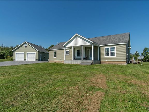 GREAT RANCH HOME IN COUNTRY SETTING!!! This home is just 10 years young with one owner. Situated on 2 acres just minutes to General Brown Schools, Watertown, and a quick commute to Fort Drum. Enter the side door into a large mud room/laundry area that's got closets and built-in storage for all those coats, hats, and boots you need during the winter months. You'll find two spacious spare bedrooms that share a bath on one end of the house and a large primary with walk-in closet and en suite bath at the other. Primary has lots of storage in the huge closet and dual sinks, separate shower, soaker tub, and water closet in the en suite bathroom. Big living room with sliding door onto the back deck. There is a front entry that opens onto the massive covered open front porch. Finally, the kitchen has TONS of cabinets and countertop space, stainless appliances, and breakfast island with seating. With central air, huge deck, and above ground pool, you'll be all set for those warm summer months. In the winter you can shed your layers in the mud room and cozy up in front of the gas fireplace. Great one level home just waiting for a new owner. Call or text today for a showing!