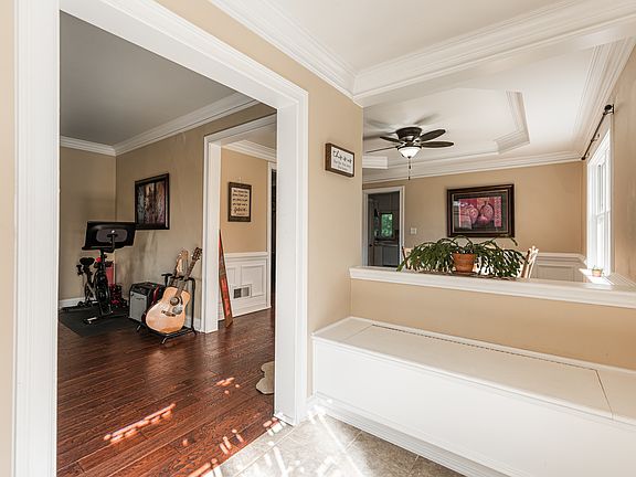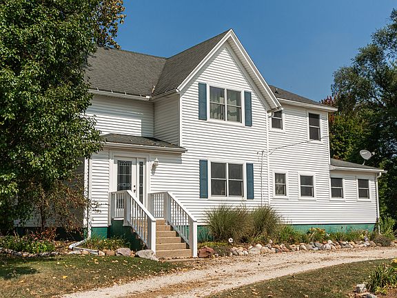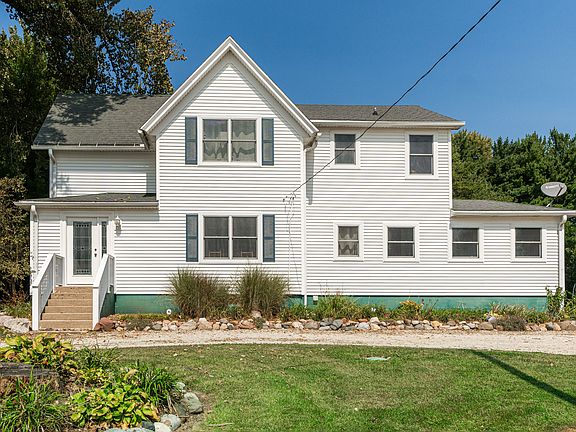 Discover this stunning and fully remodeled farmhouse, overflowing with character and reminiscent of new construction! Step into the welcoming foyer, complete with a custom bench, leading to a light-filled living room adorned with elegant trim and hardwood floors. The spacious kitchen is a culinary delight, featuring abundant cabinetry and seamless access to the family room. The family room boasts a charming stone fireplace, custom built-ins, exquisite ceiling trim, and plenty of natural light, complemented by French doors that open onto a generous 20x14 patio-perfect for entertaining! A large gathering area connects the kitchen and family room, showcasing a custom-built butler's pantry equipped with a wine refrigerator and hardwood flooring. The dining room is a statement of sophistication with beautiful crown molding, wainscoting, and stunning hardwood floors. Enjoy the airy ambiance created by 9-foot ceilings throughout most of the first floor. This home offers four character-filled bedrooms with newer carpeting, and the bathrooms have been remodeled to meet modern standards. Convenience is key with a first-floor laundry and mudroom, plus a clean basement that provides ample storage. Outdoor living is enhanced by two concrete patios and a three-car garage featuring newer insulated doors and extra storage overhead. This property also includes a milk house with a new concrete floor (hello she shed or playhouse!) and a pony barn with 3 stalls currently used for goats! Whether you have a boat, snowmobile, or other recreational toys, there's plenty of space to enjoy them here. Nestled on 4 acres of serene land surrounded by mature trees, this farmhouse offers privacy and a chance to live harmoniously with nature. In excellent condition, it's ready to become your dream home!