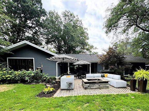 Welcome to this beautifully remodeled Ranch home on 1.62 acres in Orange Village. The house was taken down to studs, new wiring some plumbing, insulation, drywall, finish work and updated with modern elegant materials. Enjoy cooking in a thoughtfully designed kitchen equipment with custom cabinets, stainless steel KitchenAid appliances and quartz countertops. Oak hardwood flooring extends throughout the spacious living area into all 3 bedrooms. The oversized primary bedroom as extended and boasts an en-suite with heated tile flooring and a bluetooth sound system in the luxury shower with custom tile and doors. Ample storage is throughout the custom closet systems reconfigurable to your own needs. The living room features a wood burning fireplace with sliding doors for plenty of natural lighting. The basement extends the whole length of the house and features a TV room, workshop laundry room and storage space galore. A separate walk out/up from the basement leads to the backyard and patio. The primary bedroom, mudroom and living area all have doors to the central covered porch that extends to a massive backyard with gorgeous wooded views in all seasons. The patio features a 6 person spa, gas fireplace and grill area all privately surrounded by mature landscaping. The large shed/outbuilding is on a concrete slab and has an upper level for storage. Raised garden beds producing perennial rhubarb and herbs are located near a fruiting apple tree. The 2 car climate controlled garage also features an outdoor trax system for extra parking and a 30amp shore power hookup for Camper/RV parking. Invisible Fence system. Septic replaced in 2016 and on a quarterly maintenance plan. This is truly a spectacular property that is a must see to enjoy all the special features and upgrades both inside and out!. Independently Appraised for list price in August 2024. Orange School District.
