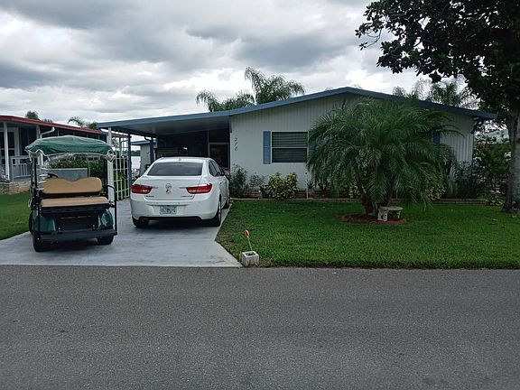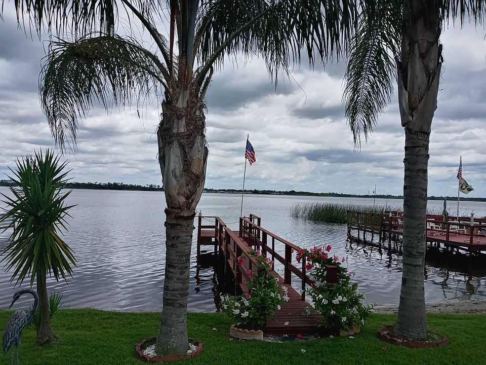 JUST LISTED - WATERFRONT WITH A DOCK!!!!!Great retirement home on 888 acre Lake Henry situated in the gated community of Swiss Village centrally located in the state. 45 to 50 minutes from Orlando and Tampa and one hour drive to the beaches. You enter the home through the screened in lanai which features a sitting area and the shed/laundry room. There are also two storage units in the lanai perfect for those items that need extra/seasonal storage. There is a backdoor to the lanai which opens out to the large brick patio which has an ample seating area to view the lake and enjoy the Florida sunshine. There is a beautiful decorator door that leads to the home from the lanai. Once inside you are greeted with an updated kitchen with stainless steel appliances and an impressive glass tile backsplash, new cabinets with under lighting. The kitchen was updated in 2014. The kitchen, dining and living are all open to each other, perfect for entertaining. The living room opens to the large glass Florida room through two sliding glass doors which features a beautiful room to enjoy the views of the lake. There are two bedrooms; the master features a queen size bed with an ensuite bath with a standing shower. The other bedroom has a trundle bed for your guests and the hall bathroom has a bathtub. This home has a well manicured lawn and beautiful landscaping. This home has alot of updates including hardwood floors installed in 2020 over new plywood underlayment, new washer and dryer in 2020, kitchen updated in 2014 with stainless steel appliances and a beautiful glass tile backsplash. The roof is only 2 years old and the a/c was installed in 2011. This home comes furnished. Upon entering the back yard you are greated with lush landscaping and your own private dock making this the perfect retirement home for the avid boater or fisherman. Call now as this home will not last long.