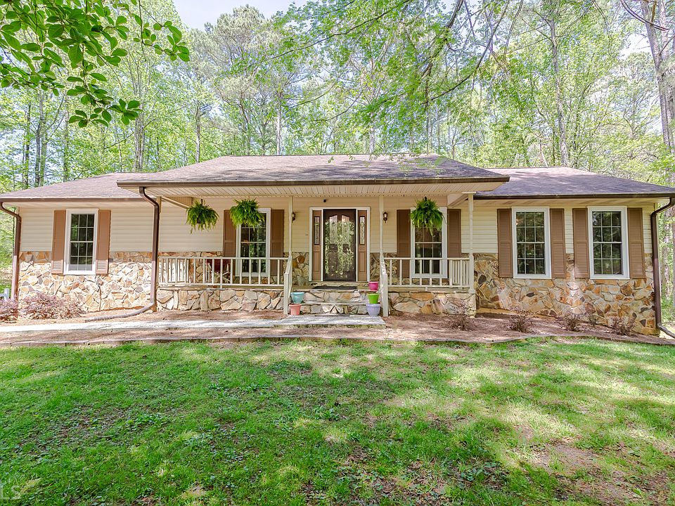 Multiple Offers received. Private Country Living in the middle of everything! Well Maintained RANCH home with Stone Accents on Beautiful 5 Acre Wooded Lot with circular driveway! Plenty of room AND a 50amp plug for your RV! Bright and Open split bedroom plan with Huge Great Room featuring a Fireplace with a Heatilator Blower Wood Stove. Oversized Screen Porch / Sun Room with glass windows for Year Round Enjoyment. Kitchen and Bathrooms with tons of Custom Deluxe Cabinets, Large Pantry and Separate Dining Room. Large Primary Suite on Main Level has 2 Walk-in Closets and Screen Porch Access. 2 Additional Bedrooms and 1 Additional Full Bath on Main Level. Nice big 2 car GARAGE with a NEW garage door & opener; 8x10 storage building for your yard tools. FULL WALK OUT BASEMENT would be great for possible apartment/in-law or teen suite with it's own entry, is partially finished with a large WORKSHOP WITH BENCHES, 1/2 BATH with it's own septic, Flex Room which could be an added bedroom or gym, Rec Room and still Extra Rooms for Future Expansion and plenty of Storage! All lighting and ceiling fans recently upgraded. Cut out WALKING TRAIL is just inviting you to explore NATURE on the back acres of this gorgeous, sloping, mostly flat property! New smooth cook top, New oven, New kitchen sink water filter, New porch lights! Award Winning Schools! Conveniently Located close to Newnan AND Peachtree City! Within Minutes to I-85, Airport, Shopping and Downtown Atlanta. No showings until Saturday, April 15th at Open House. Contact Gloria with questions - 404-543-9495