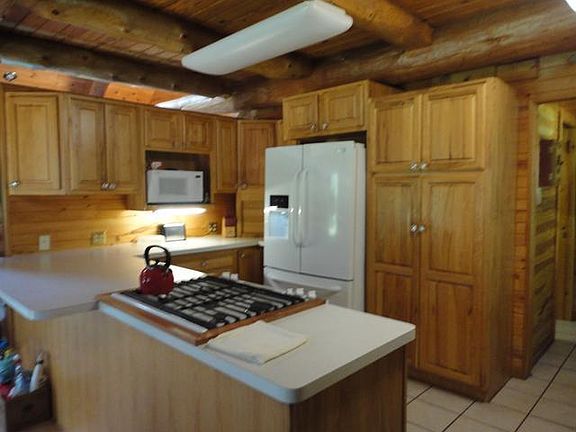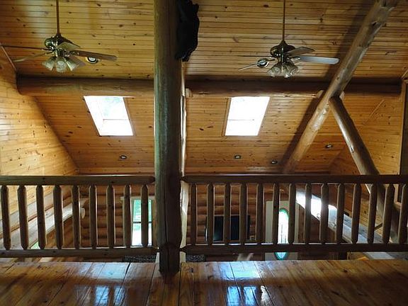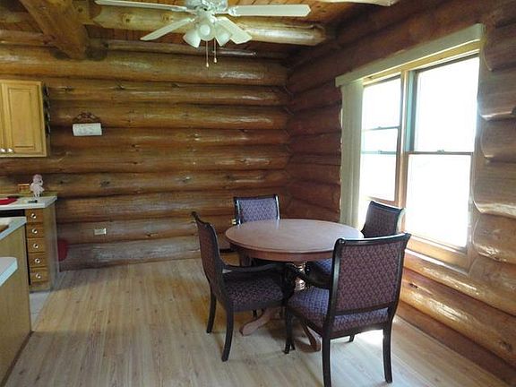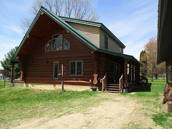 This is a lovely custom built full log home with full length front and back covered porches. The home is located on a paved road at the edge of town. The welcoming kitchen offers all newer appliances, nice cabinetry and a snack bar. A master bedroom with walk thru closet and a 4 piece bath with jetted tub is located on the main floor. Upstairs are two nice sized bedrooms, bath and an open loft that oversees the living room below. The open stair case has half log steps to the loft. Plus, there is no lack of storage on this 3 acre parcel with a 30x40 pole barn, 2 car garage with an attached carport which can be used as a covered patio for entertaining. The boat launch for all sports Lake George is 2 minutes away for lots of summer fun.