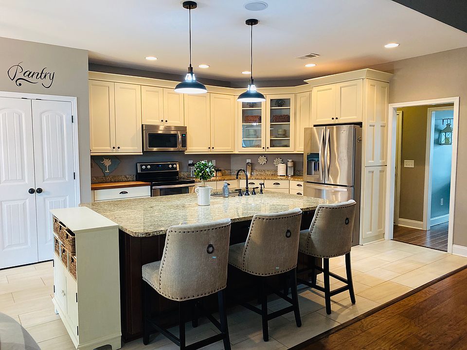 - RoomKitchenFeatures: Kitchen Island, Pantry, Breakfast Nook, Breakfast Bar, Solid Surface Countertops