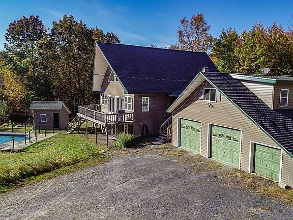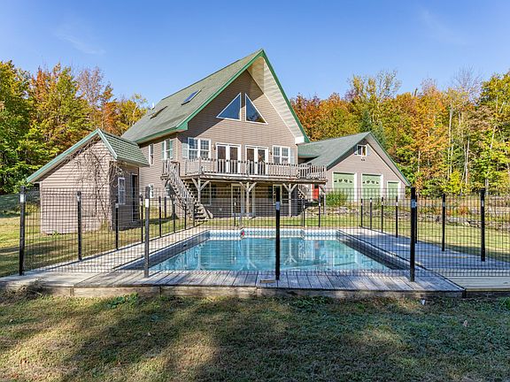 STUNNING custom-built 2000 Chalet in Harmony! This beautiful home is perfectly situated on a sprawling 5+ acre lot. The main floor is concept with a spacious, sunken living room and a stunning cathedral ceiling. Glass doors lead to a wonderful 10' x 34' deck overlooking an in-ground pool and the lovely front yard. Also located on the first floor is a bedroom, full bathroom, laundry room and large mudroom with closets for storage. The second floor hosts an oversized primary bedroom with a full bath and large closets. The basement is partially finished, with recent drywall and insulation to enjoy in all seasons and for many purposes. Enjoy the attached 2.5 car garage with automatic openers and a full storage room above. This property is conveniently close to ATV and ITS trails for those who enjoy outdoor recreation. Come see this gorgeous home today!
