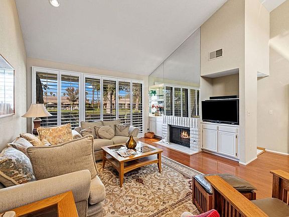 This two bedroom, two bath Monterey Country Club condominium checks all of the boxes! Located just across the street from Monterey's clubhouse, fitness center, bocce, pickleball and tennis courts, this 200 Plan is also just a short stroll to two of the development's 37 pools and spas. The 200 Plan features a private entry courtyard, two generously sized bedrooms and an atrium which has been seamlessly converted to an office area. The unit looks out onto the 7th fairway of the East course and you'll also enjoy Mt. San Jacinto views from the patio. Inside, the property includes a fireplace and cathedral ceilings. The owners recently installed a new, energy efficient HVAC system. Other updates include plantation shutters, added recessed lighting, ceiling fans, tile and wood flooring and refreshed kitchen and baths. The home is available turnkey furnished. Monterey Country Club features 27 holes of championship golf, 20 pickleball courts, tennis, bocce ball, fitness center and a full service clubhouse with an active calendar of events. With low HOA fees and new membership options, Monterey Country Club is one of the most affordable clubs in the Coachella Valley!