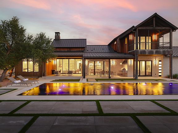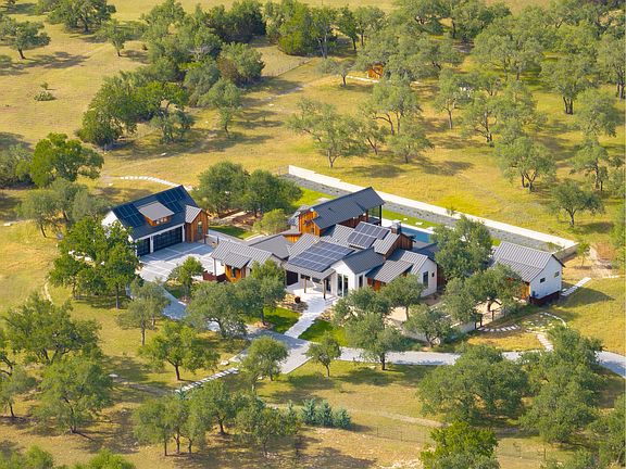 Welcome to 278 Barton Bend Rdan extraordinary Hill Country estate situated on two expansive lots totaling 7.31 acres in the prestigious Medlin Creek Ranch. With 5,003 square feet of total living spaceincluding a fully independent guest house and a finished garage office/flex spacethis private compound combines modern luxury, sustainability, and architectural artistry in one remarkable package. Designed for discerning buyers who value both function and flair, the main residence features 3 bedrooms and 4.5 bathrooms, while the stand-alone guest house offers a 4th bedroom and full bath, complete with its own kitchenette and HVAC system. Ideal for multi-generational living or guest privacy, the guest house is fully detached and self-contained. Entertain effortlessly across expansive indoor-outdoor spaces, highlighted by an infinity-edge pool with integrated spa and fire feature, an outdoor grill area, and a professional-grade bocce ball court. Ipe wood decking, Portuguese stone finishes, and LED architectural lighting bring elegance and ambiance to every corner.