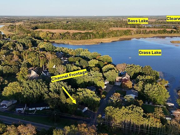 Welcome to this inviting one-level home offering 3 bedrooms and 2 bathrooms,with a peaceful setting on the channel leading to Grass Lake, with direct access to Clearwater Lake via the Clearwater River—ideal for boating, fishing, or simply enjoying the quiet waters without the noise of busy watercrafts. Step inside to vaulted ceilings that create a spacious, open feel throughout. The front living room features a beautiful custom picture window with a round top, filling the space with natural light and welcoming you in. A large dining area, complete with a built-in hutch and corner cabinet, flows seamlessly into the kitchen, which boasts a skylight, peninsula, and plenty of counter and cabinet space. Just off the dining room, you’ll find a cozy family room with a fireplace and built-in shelving—perfect for relaxing or entertaining. The primary bedroom is generously sized with a private full bathroom and skylight, while the guest bath also offers a skylight for added brightness. Convenient main-floor laundry with washer and dryer included makes for easy living. Outside, the large fenced-in yard features a huge shade tree, extensive landscaping with hostas, wildflowers, and perennials, and both front and back decks, perfect for outdoor gatherings or just enjoying the peace and quiet. A two-stall garage and a 12’x8’ shed in back adds convenience and storage. This home combines space, charm, and a serene waterfront location—ready for its next owner to enjoy!
