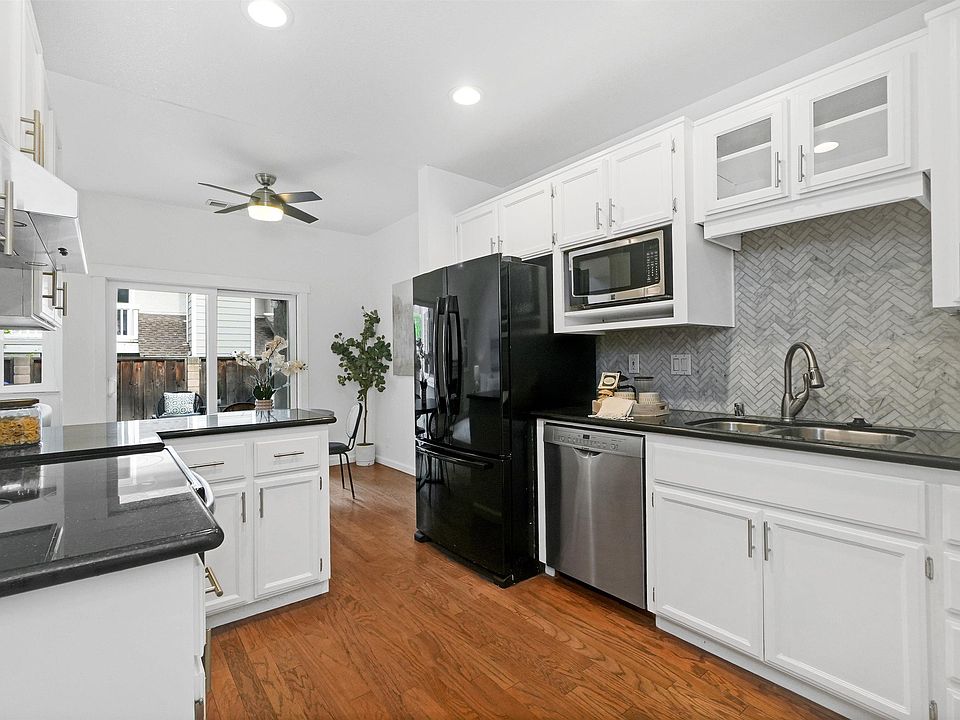 Discover this beautifully updated 2-bedroom, 2.5-bathroom townhouse in the desirable Birch Creek Terrace community. This home features hardwood flooring, vaulted ceilings, fresh interior paint, newer double-pane windows, sliding glass doors, recessed lighting, upgraded solid wood interior doors and a cozy wood-burning fireplace. The modern kitchen offers granite countertops, stainless steel appliances, and ample storage. Upstairs, both bedrooms have en-suite bathrooms, with the primary suite boasting a walk-in closet and an updated bathroom. Relax or entertain on the spacious patio with custom pavers. Additional highlights include a smart thermostat, smart front door lock, RING doorbell, single-car garage, one reserved parking space and access to the community pool and clubhouse. Ideally located within walking distance to Pleasanton’s charming downtown, with shops, dining, and events at your fingertips. Don’t miss this stylish, move-in-ready townhouse in heart of Pleasanton.