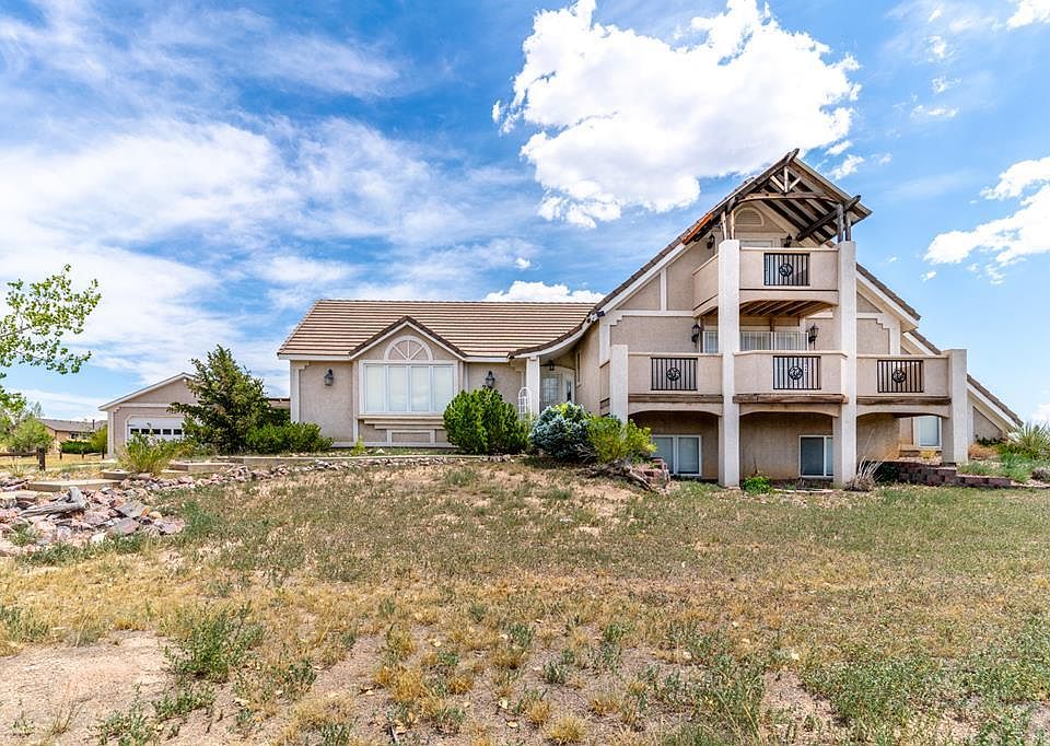 One of the coolest properties in Pueblo West. Perched on the top of a hill, this house has uninterrupted views of the mountains and almost all of Pueblo West as well. There are balconies off of 3 bedrooms including the master, as well as a huge deck on the rear of the house to take full advantage of those views. Once inside, you enter a gigantic living room complete with a gas log fireplace. The kitchen is equally impressive, It is expansive, and equipped with a built in fridge, stove, wall oven, wine fridge and dishwasher. The south end of the house is a huge greenhouse. It has a wood burning stove and windows that vent into the upper level so that in the winter, you can heat the house inexpensively. This has to be one of the best deals in Pueblo County for the square footage. It sits on 2.7 acres so there is plenty of space for a toy box if you choose.