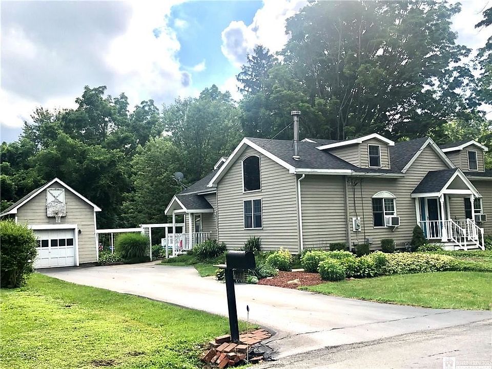 Modern 3 bedroom/2 bath home with open & spacious rooms! Bright morning/dinette room off the large oak kitchen with stainless steel appliances along with a separate built-in bench/table area! Large living room with pellet stove(2018) and lovely staircase to the upper 2 bedrooms, full bath with jetted tub and separate shower, plus, a loft that would be great for a home office, hobby or play room! First floor bedroom/bathroom & laundry! Beautifully landscaped, deep backyard with deck and garage! Tankless hot water heater! Roof and gutter guards 2018!