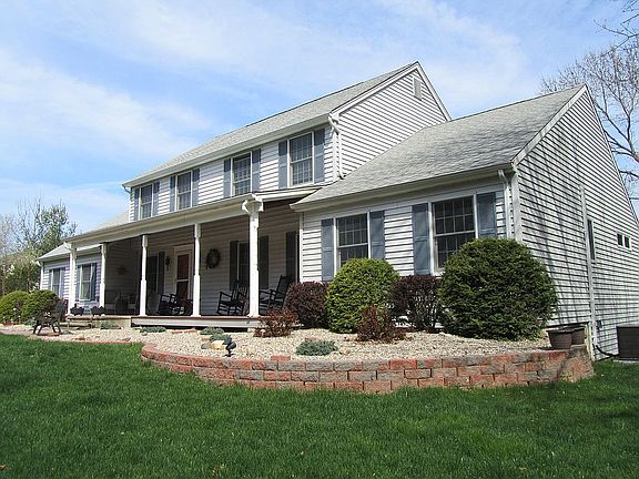 Gorgeous 1.84 acre level parcel with stream abuts nature preserve! Relax on the inviting covered front porch and enjoy this 4-5 bedroom home (4 bedroom septic). Features include an addition with living room, potential bedroom and full bath that could be used as a guest suite, au pair/teenager space or a great home office! The addition has beautiful hardwood flooring, ceiling fan and some 36" door widths. The eat in kitchen in the main home features ceramic tile flooring and granite counter and is open to the spectacular family room with vaulted ceiling, hardwood flooring, and gas fireplace! The picture widow provides a wonderful view of the private, level lot with a shed bordering the Fresh Meadows Nature Preserve. Formal living and dining rooms with hardwood flooring. The 4 bedrooms on the upper level all have berber carpeting. Andersen thermopane windows, 6 panel doors and Whole house automatic generator.