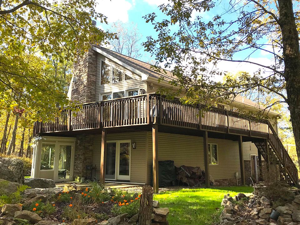 Beautiful Golf Course Home on the 7th hole of Eagle Rock's Arnold Palmer Championship Course!. Hardwood flooring on 1st floor, Floor to ceiling stone fireplace. Wonderful, spacious great room with cathedral ceilings. Open concept kitchen offers cherry cabinets & center island. Nice master suite, WIC & bath w/ whirlpool tub. All season sunroom & wraparound deck overlooking the green.
