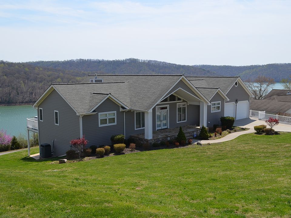 Magnificently appointed 5 BR, 4 & 1/2 B home is located in prestigious Deer Hill section of Deerfield Resort. Overlooking Norris Lake & Chuck Swan Wildlife this home has one of the best unobstructed views of the mountain and lake. Main level has a great room with cathedral ceilings, fire place, spacious kitchen, living room, dining, 2 master suites, laundry room, pantry and attached oversized garage. Lower level has 3 BR 2 Bath, Family room w/kitchen and patio. Short golf cart drive to docks