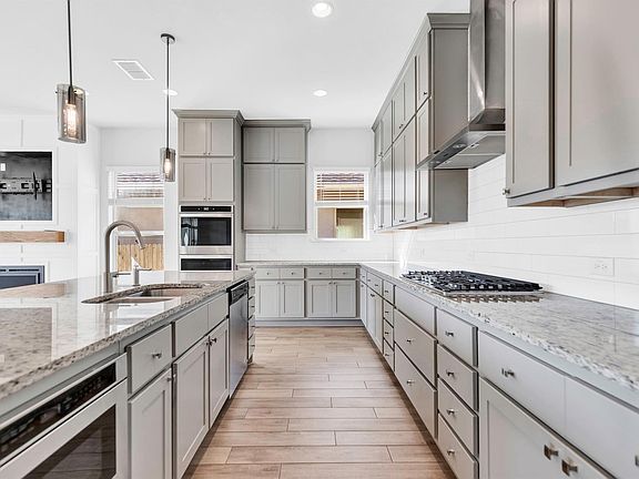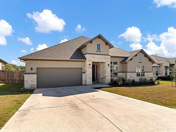 Located on the edge of the Hill Country and just minutes from Austin, this well-maintained single-story home offers comfort, convenience, and style. Overlooking private parkland, it’s nestled within the highly acclaimed DSISD and benefits from a low tax rate under 2%. Inside, the open layout is enhanced by cathedral ceilings and wood-look tile that extends throughout the home, including the spacious owners’ suite. The living room features a beautiful custom built-in window seats and electric fireplace. The kitchen has upgraded 63” Kent Moore cabinets, granite countertops, a Wi-Fi enabled double convection oven, gas cooktop, and chimney vent hood, perfect for both everyday living and entertaining. The owners’ suite includes a large shower, while the second bedroom features its own en-suite bath for added privacy. This gated boutique community provides access to a luxury pool, clubhouse, playscape, and more than 15 acres of parkland, creating a serene setting with top-tier amenities.