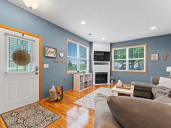 Welcome to easy living in this stylish corner-unit townhouse near Shops on Maine in South Rochester! Step in from your private patio to a bright living room with 9ft ceilings, laminate floors, and a cozy gas fireplace. Those tall ceilings continue into the corner dining area and upgraded kitchen featuring extra-tall maple cabinets, solid-surface counters, black appliances, and a walk-in pantry (yes, a real walk-in!). The peninsula is perfect for morning coffee or evening chats. Upstairs, enjoy two spacious bedrooms, two full baths, and a versatile loft ideal for a home office or bonus living space. The primary suite boasts a private bath with double sinks and a walk-in closet. Most flooring is laminate, tile, or cork (with carpeted stairs for safety). Bonus perks include upstairs laundry, an attached garage, and a pet-friendly HOA that covers snow, lawn, and exterior maintenance. Comfort, convenience, and charm—all in one!