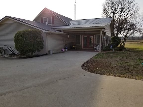 This country home IS IN GRAVES COUNTY, (kids WILL go to GRAVES COUNTY SCHOOLS)was built approx around 1920, remodeled in 1985, 2003, 2016. We have tried to put into this house 1st quality materials. We have lived here 42 years and love this house and love our yard. (landscaped) The house can have 5 bedrooms or 3. It is just what you NEED it for, Large living room, large utility, kitchen, dining room, dressing room, master bedroom, bathroom and walk in closet. Large Sunroom/playroom, Lots of room for large families or average families. Approx 2 acres and a 3 car unattached garage in 2003. The garage has a separate kitchen, with storage and a bathroom. It has a 4 foot door to open up into the garage for family reunions! The building is heated and has air. The yard has a 27 foot above ground pool with deck. a huge garden spot and lots of trees. The patio on the back of the house was built in 2016. The flooring on the patio is stamped. The inside of the house has textured walls. Windows are called American double paned windows, both top and bottom open for easy cleaning., Blinds and shades window treatments, Remodeled bathrooms and metal roof was added in Nov 2016, Garage has shingles. Has Storm shelter Chicken barns at bottom of hill have been closed down for 3 years and is being used as a shed for storage and cattle. All walls in older part of house are tongue and groove. Carpenters said there is enough lumber in this house to build 3 houses!!!