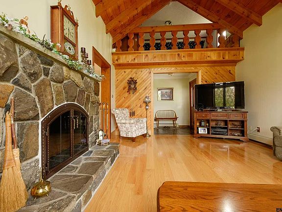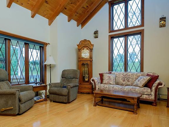 52 beautiful acres of privacy with 4 bedroom, 2 Bath custom home, HW floors, granite counters, sunroom, full basement workshop, 2 furnaces (wood and oil), heated 3-bay separate garage, barn, garden shed, pond, landscaped. If you are looking for a perfect home in the counry with an easy commute on the Thruway or a place to start a farm, work from home, garden, enjoy seclusion, this is a great place to settle. Priced to sell, this is a must see. Furniture and equipment can be purchased separately. KEEP CAT IN