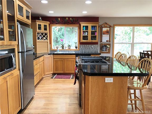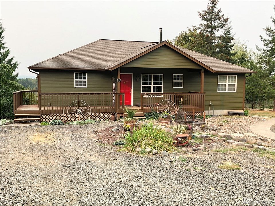 Secluded country setting! This 5 acre property is ready to go for animals, barn, shop, pasture area & borders acres of timberland. Great floor plan kitchen w/ island, dining area, open to the living room, propane stove, utility, 1/2 bath & master suite. Master bedroom has full bath, jetted tub & walk-in closet. Lower level has spacious family room, 3 bedrooms, wood stove, bath & storage rooms. Front & back deck to enjoy the territorial & river views. Lots of space to entertain & play.