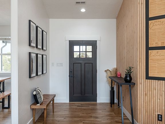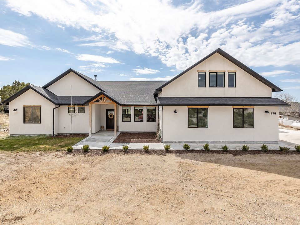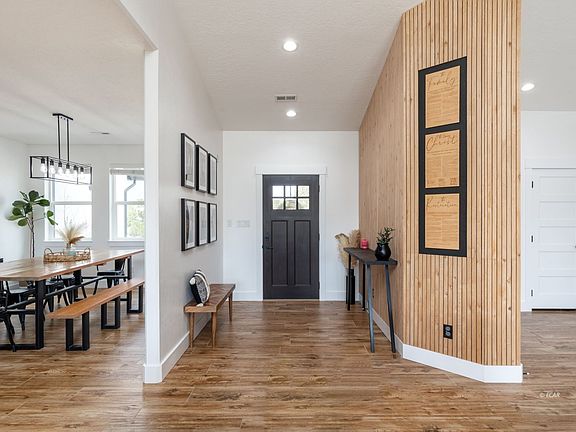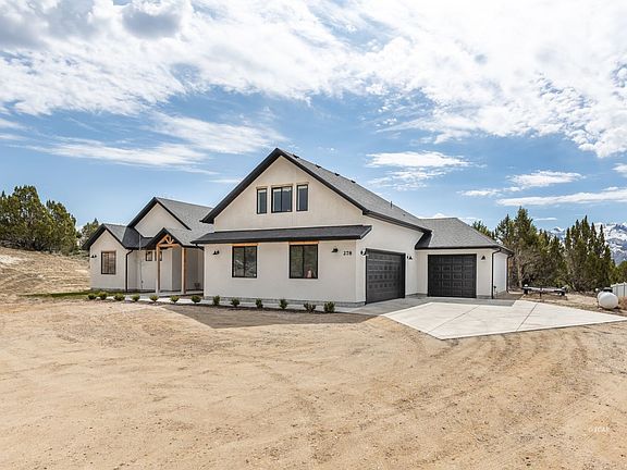 Welcome to your contemporary oasis located in one of the most beautiful locations in Spring Creek! This over 3100 sf residence embodies the epitome of modern luxury, featuring an open concept floorplan that seamlessly integrates spacious living areas. The heart of this home is in its gourmet kitchen, with stunning grey cabinets accented with gold hardware, creating an elegant ambiance! The beautiful wood look tile adds warmth and style to the space and highlights the stylish wood and black accents through the home. With 4 bedrooms and two living spaces there is plenty of room for entertaining or quiet down time. The expansive garage provides convenient storage solutions for all your hobbies! Indulge in the tranquility of the surrounding landscape, whether you're enjoying a coffee on the covered patio or hosting gatherings with loved ones, every moment is elevated by the panoramic vistas of the Ruby Mountains! A stylish shed will hold additional outdoor gear, there is a separate area to store wood for your fireplace, and a fenced area with raised beds allows for you to dabble in your own vegetable enterprise! Don't miss the opportunity to make this stunning property your own!