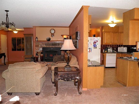 This spacious 1675 sq ft main floor and 1628 sq ft lower level home has many great features of both country and town living. This home has amazing backyard views overlooking the Yellowstone River and is located less than 3 miles north of Glendive on four acres. The main floor has two bedrooms, an office, kitchen/dining room, screened in patio, living room, full bath, and main floor utilities with 1/2 bath. The spacious and beautiful living room with its rock fireplace, has new paint, carpet and crown molding. The full bath has had a complete makeover with hickory cabinetry, slate flooring and tub surround. The lower level has large family room with rock fireplace, 3/4 bath, canning kitchen and the possibility of 2 or 3 bedrooms. There is an attached, heated double garage, a 36' X 30' Pole barn, a 24' X 20' mini barn and an 18' X 14' shed. This home has a brand new roof, C/A, MDU natural gas and a 7 party joint irrigation system. A great opportunity for in town conveniences with a country setting.