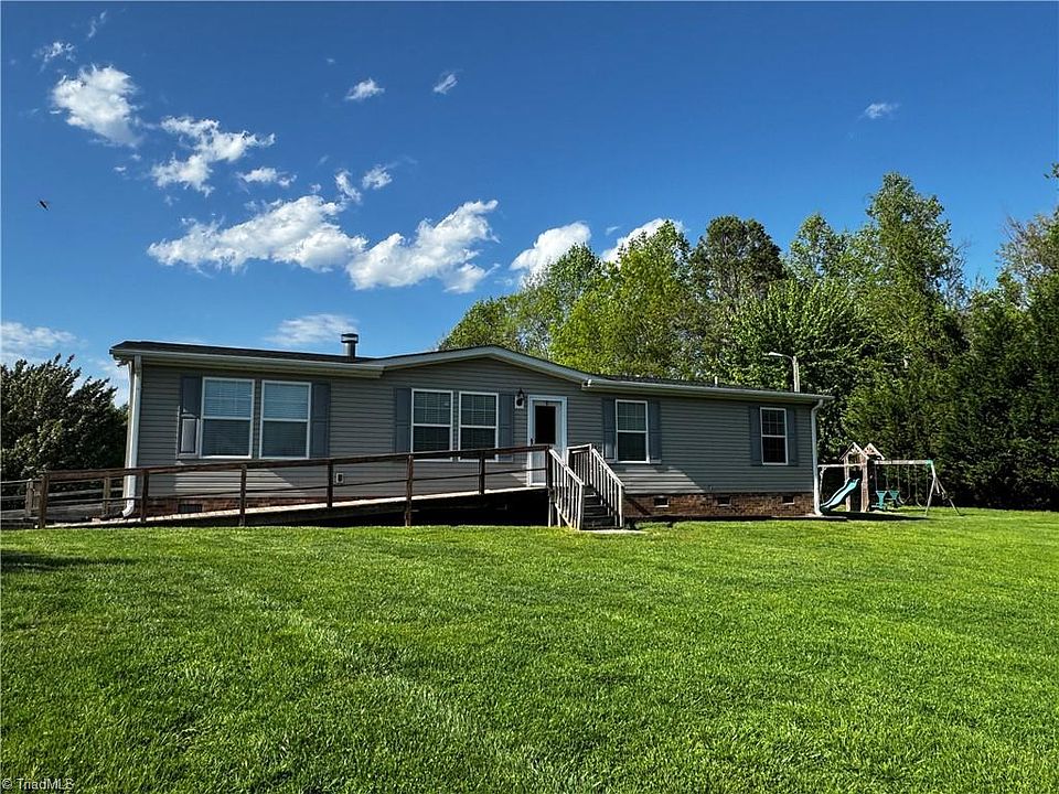 2023 HVAC and Roof. Find this 3 bed/2 bath home nestled away at the end of Hincher Road. This property sits on 2 acres of pristine cleared land which offers a peaceful scene. Enjoy your backyard while sitting on the covered deck which also has ramp access. This home offers a large kitchen with lots of cabinet space along with a dining area right off the kitchen. The primary bedroom supplies an ample amount of storage with a large walk-in closet. The primary bath, features a double vanity, a walk-in shower, and a nice large tub. Lots of closet space can be found in the two other additional bedrooms. Close to many wineries, hiking and Stone Mountain State Park. Carpet and paint allowance will be given with an acceptable offer.