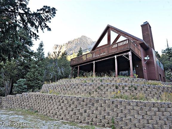 One of a kind custom retreat!Short drive from Vegas to be out of the desert heat into lush mountain air. Spectacular views of surrounding mountains.Wrap around deck. 4 bed 3 full baths. Master retreat is the whole 3rd floor with its own balcony and sky view windows & with spa like bath.Large kitchen with Island, snack bar,dining area and double ovens just to mention a few great options, 2 family rooms, game room w/wet bar and 2 stone fireplaces