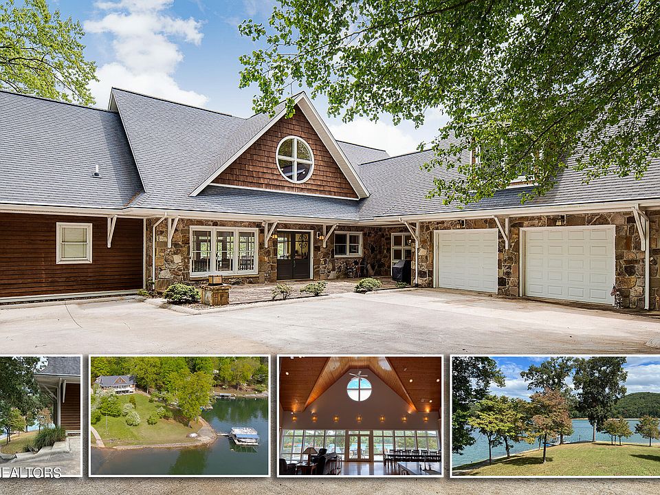 ''Field of Dreams'' could very well be your Lake Life Living Dream Come True! The perfect name for this custom built and masterfully designed Norris Lakefront home. From the moment you enter into the massive great room with soaring ceilings framing a wall of windows overlooking the breathtaking views across the broad waters of Norris Lake to Chuck Swan Wildlife Mngmt Preserve. Boasting a 6484 sqft split & open main floor plan with 9 bedrooms, 5 1/2 baths, hardwood floors, hand placed stone fireplace(s) both on main and lower level, custom cabinets, huge island (easily seats 6), speaker systems, maintenance free decks and patio with hot tub. Custom over sized windows thru out the 2 & 1/2 floors to bring the outdoors inside. Positioned on a 1.34 acre RARE level to Lake Lot, with NO steps. A paved path affords a gentle stroll or golf card ride (handicap accessible) to the 2 story, double slip dock with (2) Jet Ski Ports & (1) lift nestled along 280ft of shoreline. (Dock Permit on File) It literally feels as though you have your own Nature Park with all the bells and whistles of private Lakefront deep water year round Lake access!