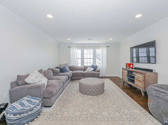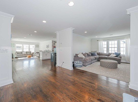 Welcome to this beautifully renovated colonial home in Teaneck, which was expanded and renovated approximately 5 years ago. The first floor of the house has an open layout feel, which includes entryway with coat closet, dining room, living room, den area, and a modern eat in kitchen with ample counter space and a large island. On the first floor you will also find a full bathroom and a bedroom. The second floor of the home has three bedrooms, full bathroom, the master bedroom and bathroom with walking closet, and a spacious laundry room. The basement of the home is fully finished with a playroom, office, full bathroom, and plenty of storage. Additional features of the home include hardwood floors, 2 zones HVAC, oversized garage, large patio perfect for outdoor entertaining and playing basketball, front porch. The home is located close to parks, shopping, and transportation into NYC.