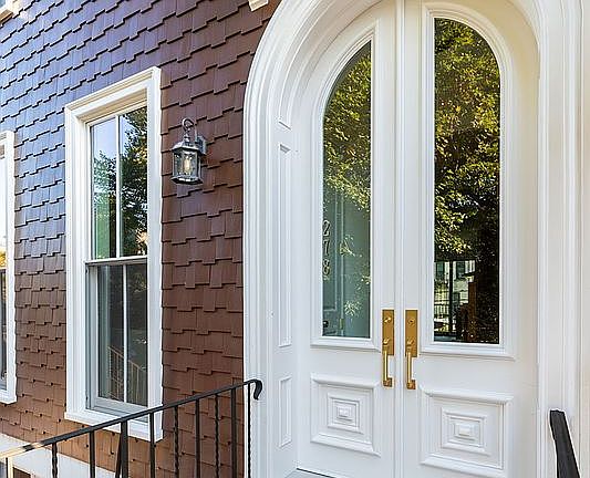 This home’s curb appeal is unmatched. The façade has been meticulously restored using individually crafted and hand-laid cedar wood shingles, installed to meet the exacting standards of the Landmarks Preservation Committee. A striking solid mahogany wood front door provides a rich, elegant welcome and completes the façade’s stunning transformation.