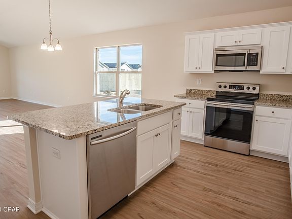 New construction by Truland Homes in the highly desirable Callaway Area! With 3 Bedrooms and 2 Baths, this Blue Ridge open floor plan home is a must-see, with a stunning interior featuring 10' high ceilings in the main living areas and a 9' tray ceiling in the master suite. Luxury Vinyl Plank floors, granite countertops, and so much more are found throughout the home. The exterior boasts of Hardi Board on all four sides, Tankless Gas Water Heater, and a completely landscaped yard with a sprinkler system. Offering added innovative technology and convenience, this home is equipped with a SMART Things hub, a Ring security doorbell, a Samsung tablet, and a Nest energy-efficient thermostat. Conveniently located to shopping, recreational parks, schools, and Tyndall Air Force Base.