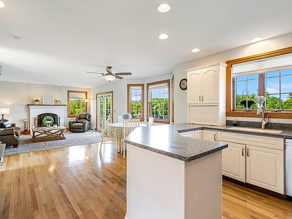 Welcome to your dream colonial home, nestled on 4.6 private acres of rolling fields and farmland adorned with mature Christmas trees. This exquisite property features an open-concept kitchen equipped with stainless steel appliances, complemented by stunning hardwood floors that flow throughout the home. The family room, with its cozy fireplace and doors leading to the back deck, offers breathtaking views of the rolling hills, perfect for enjoying beautiful sunsets.