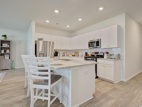 Welcome to this LIKE NEW 3 bedroom 2 bathroom "Dover" floor plan across the street from a picturesque amenity pond. This 6 month home features two generous size bedrooms with a full bathroom for your family or guests when you enter the home. The inviting long hallway leads to a large kitchen with plenty of cabinetry and large island for entertaining guests or eating meals together as a family. The kitchen also has granite countertops, stainless steel appliances, backsplash, pantry and plenty of space for cooking or gathering. The living room is a perfect place to watch movies or unwind from a busy day. The master bedroom can accommodate large bedroom furniture and has an adjoining fill bathroom with two double sinks, show and walk in closet. The outside patio is a great space for your grill or extra entertaining area. This home features a two car garage, tankless hot water heater, gas stove and so much more. You cannot beat the location as it is near great restaurants, shopping, the beach and all major roads. Beach Village located in the Deerfield community is a newer natural gas community. This home will certainly not disappoint and not to mention everything is brand new!!