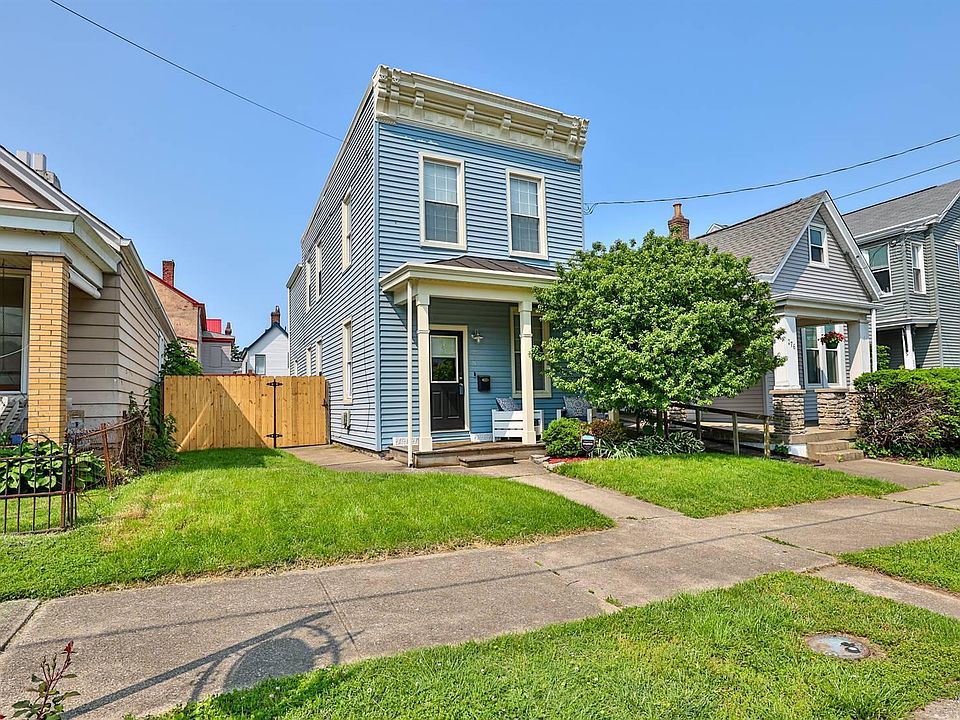 Welcome to Bellevue and all it has to offer! This updated 3 bedroom 1 full 1 half bath charmer is walking distance to shopping, bars and restaurants* And has off street parking!*Hardwood flooring* First Floor laundry* Kitchen features butcher block counters and tile back splash and stainless steel appliances*. Updated Baths* generous bedrooms with loads of storage*. Inviting covered front porch*Fenced Backyard w/pergola, off street parking, and a shed* Convient location is close to 471 and downtown Cincinnati. What are you waiting for?